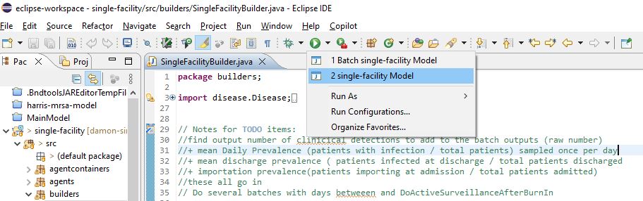 Pull down the drop-down menu and click FacilityEpiSim model.