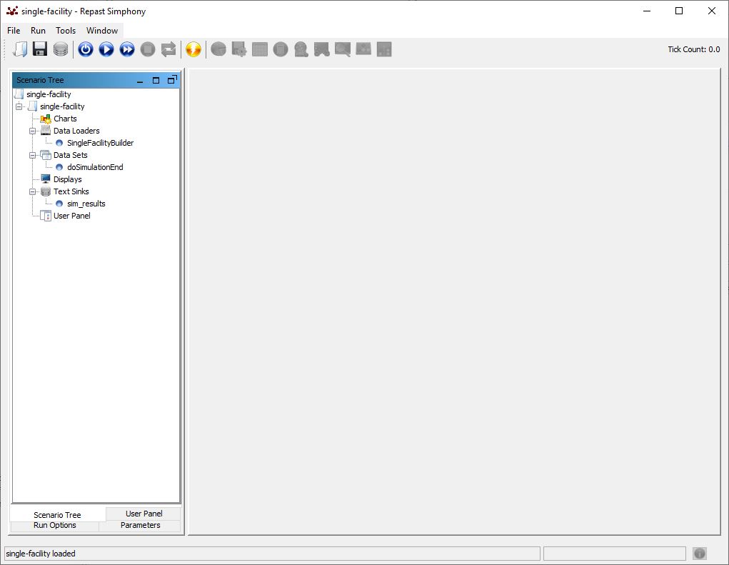 When the parameters are configured the way you want them, find the blue Initialize Run button on the toolbar. Click it, wait for the simulation to initialize, the press the start button right next to it.
