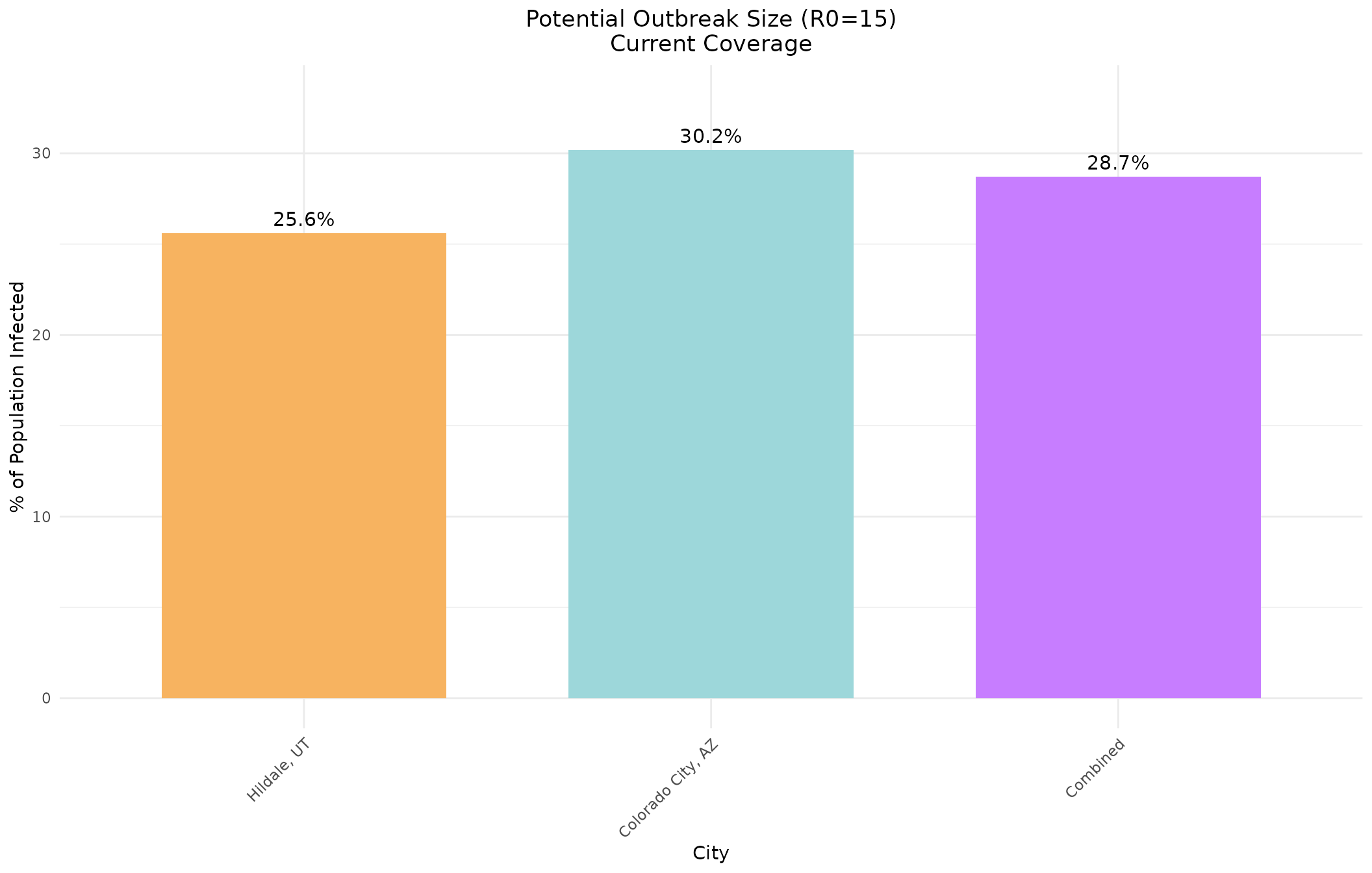 cat("Combined Cities - Current Vaccination Coverage (95% adult rate)\n")